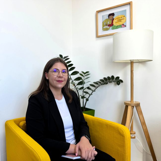 Psiholog clinician și Psihoterapeut cognitiv-comportamental Experiență: • Psihoterapia copilului și adolescentului cu TSA și alte tulburări de neurodezvoltare • Psihoterapia copilului și adolescentului cu dificultăți de integrare, probleme socio-emoționale, depresie, anxietate, adicții, fobii, tulburări alimentare • Psihoterapie pentru adulți • Consiliere de familie Specialitate: Psihoterapie copii, Psihoterapie adolescenți, Psihoterapie adulți, Consiliere, Dezvoltare personală